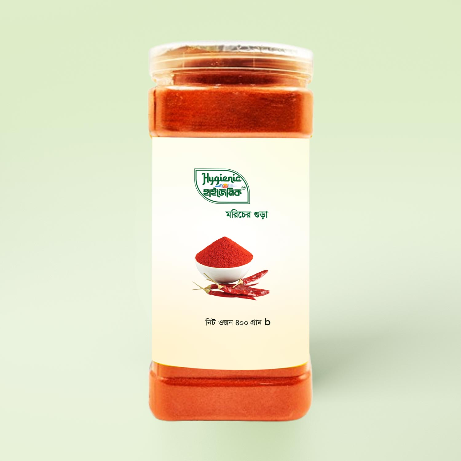 হাইজেনিক এগ্রো ইন্ডাস্ট্রির মরিচের গুঁড়া তৈরি হয় দেশের উৎকৃষ্ট মানের শুকনা মরিচ থেকে। স্বাস্থ্যসম্মত প্রক্রিয়ায় পরিষ্কার করে প্রাকৃতিকভাবে শুকানো হয়, এরপর আধুনিক যন্ত্রে ভাঙা হয়। এতে থাকে না কোনো কৃত্রিম রং, কেমিক্যাল বা ভেজাল।